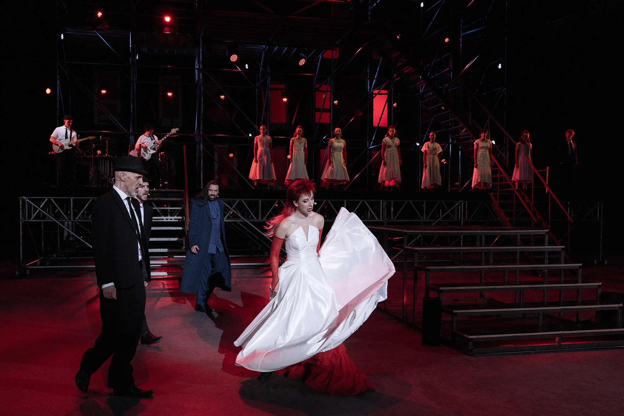 ★★★★ Volkskrant: 'Bluebeard van Holland Opera opent wervelend met een popconcert. Knap hoe de cast en de band moeiteloos switchen tussen de contrasterende muziekstijlen, van oorstrelende lyriek naar classic rock naar de vlotte, komische duetten. Dreigende strijkers schroeven de spanning op.