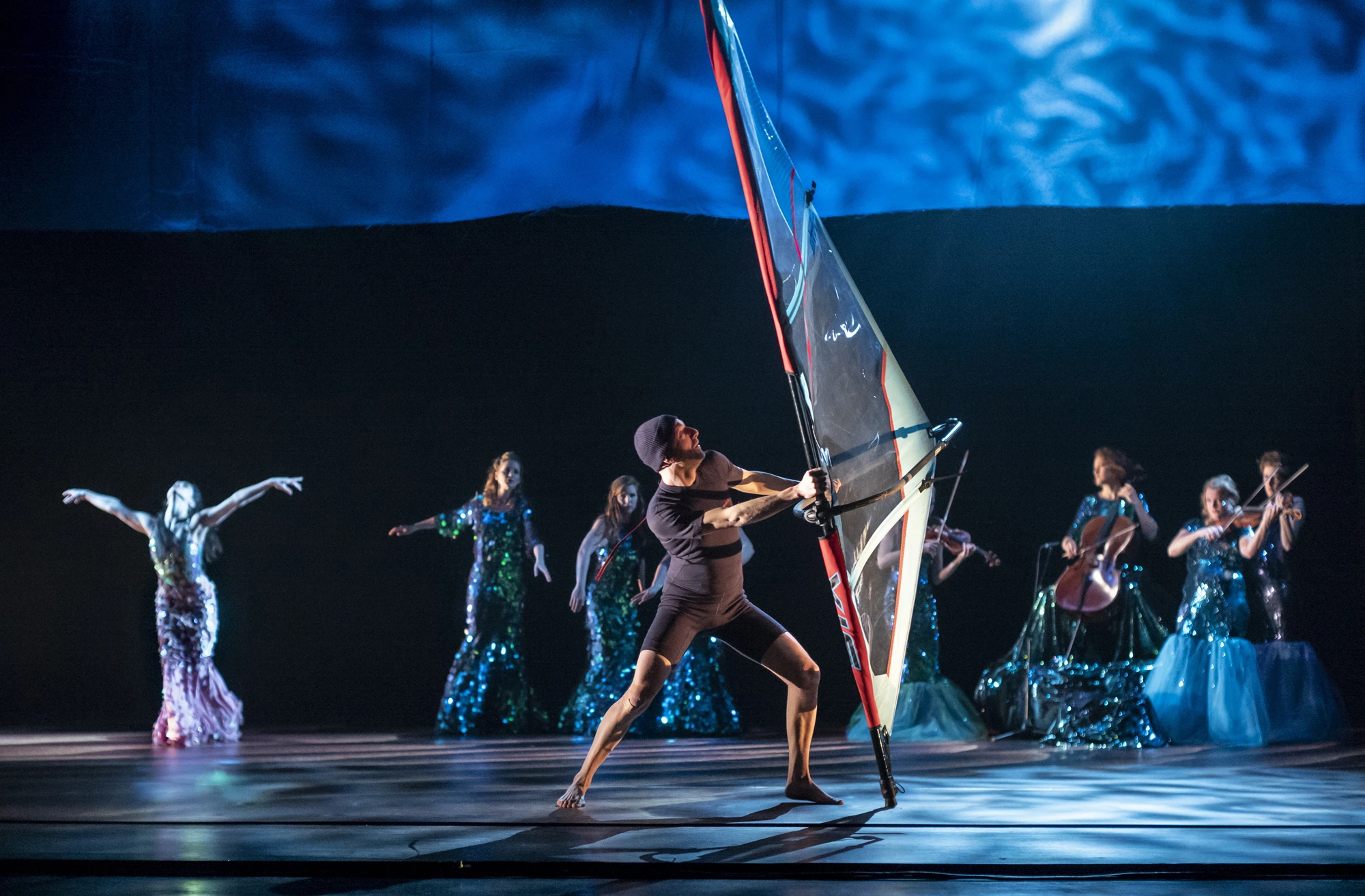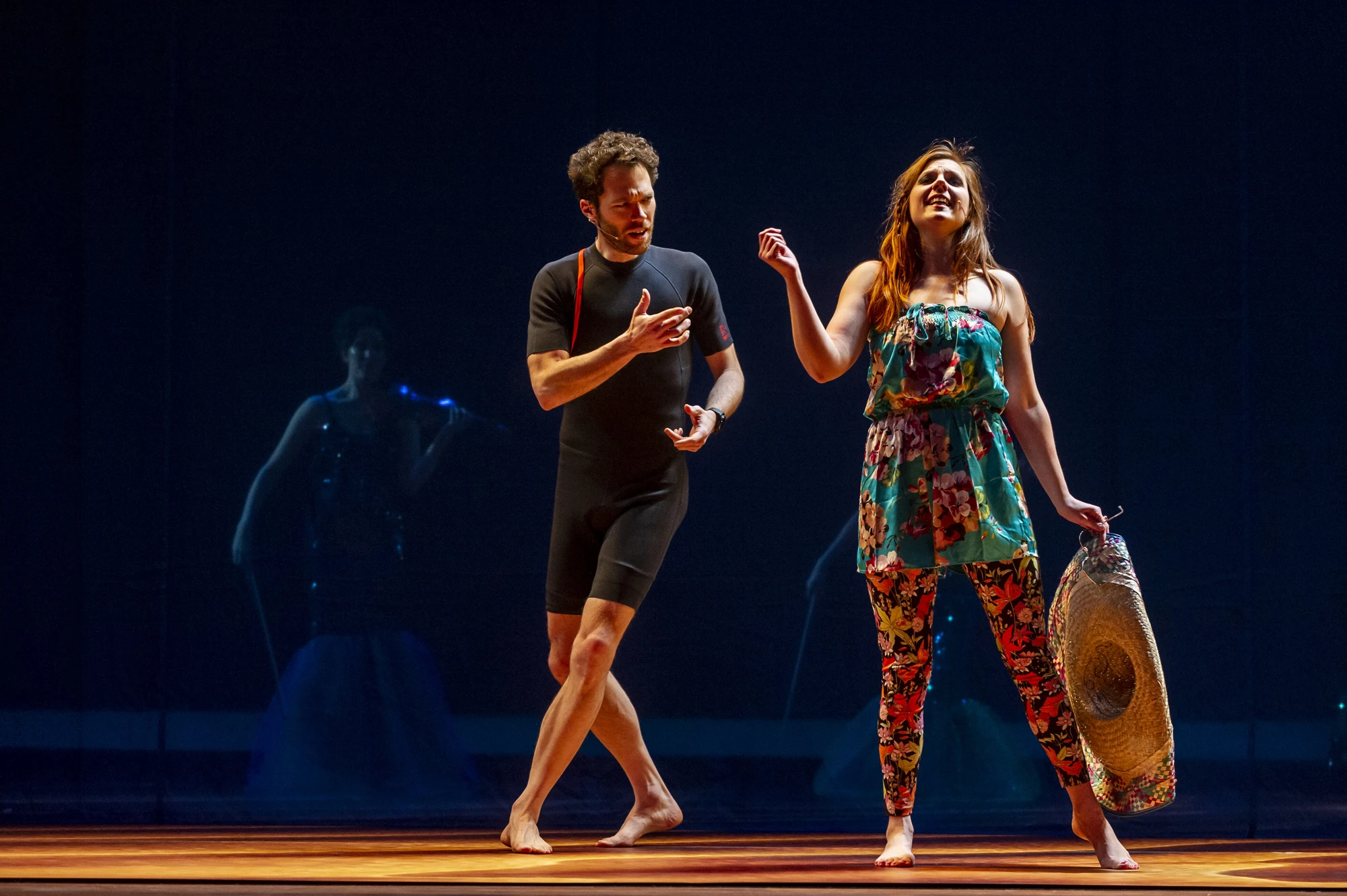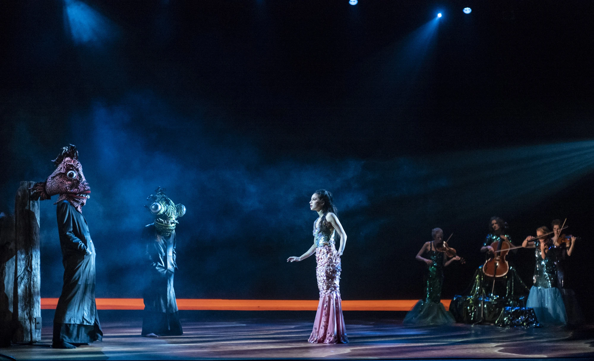 Haaien? Daar klinken die enge krijsviolen uit Jaws. Surfdude in zicht? 'Good Vibrations'! En de samenzang van de zeedochters doet denken aan Wagners Rheingold, waaraan ook de kabbelende klanken van het goed spelende Ragazze Quartet bijdragen. Het kwartet versmelt romig met de stemmen én heeft theatrale meerwaarde. De zangers zingen en acteren met verve en de kwetsbaar-krachtig dansende Jade Stenhuijs is voor de titelrol een vondst.