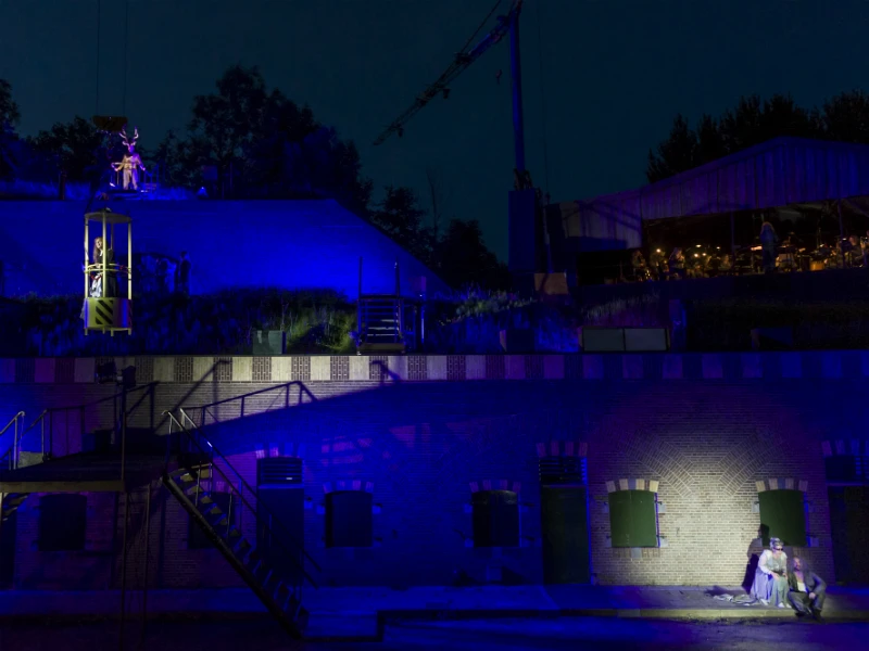 Actuele en zinderende opera in een geweldig decor | Wat deze opera zo bijzonder maakt is het natuurlijk gebruik van de omgeving en het intense samenspel tussen de zangers, die elkaar vanaf grote afstanden toezingen. Zelfs de donkere wolken die zich in de loop van de opera samenpakken boven het fort lijken geregisseerd. Het Jong Nederlands Blazersensemble speelt bovenop het fort en toon zich veelzijdig.