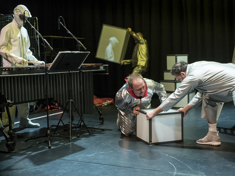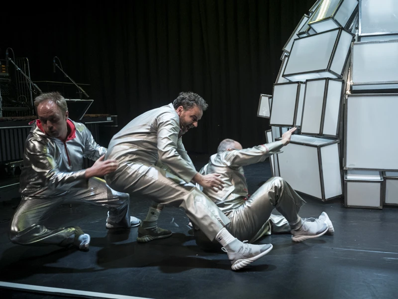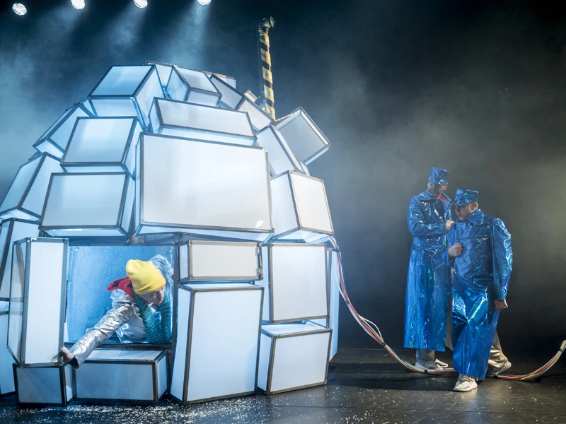 Inventieve jeugdopera met een explosief einde | Prominent op het podium staat een bouwwerk van blokken dat enerzijds doet denken aan een iglo of de eerste maanlander, en anderzijds aan het menselijk brein. Associaties waarmee op vaak komische wijze wordt gespeeld, niet alleen in de tekst van Carel Alphenaar, maar vooral ook visueel. Als het opeens sneeuwt in het bouwwerk bijvoorbeeld, door de futuristische kostuums van Esmee Thomassen, maar ook subtieler als door het fraaie lichtontwerp dit ‘brein’ anders oplicht en zelfs kortsluiting maakt.